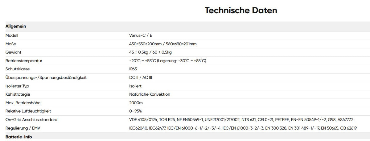Lebensdauer : 6000 Ladezyklen / bis zu 15 Jahre