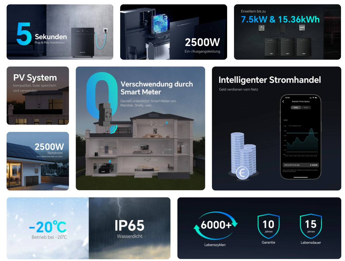 Kapazität : 5,12 kWh (erweiterbar auf 15,36 kWh)